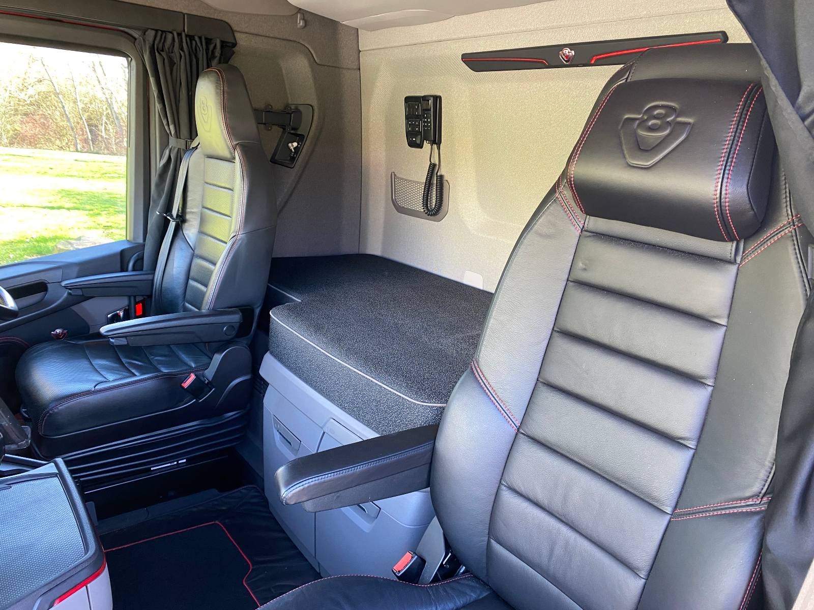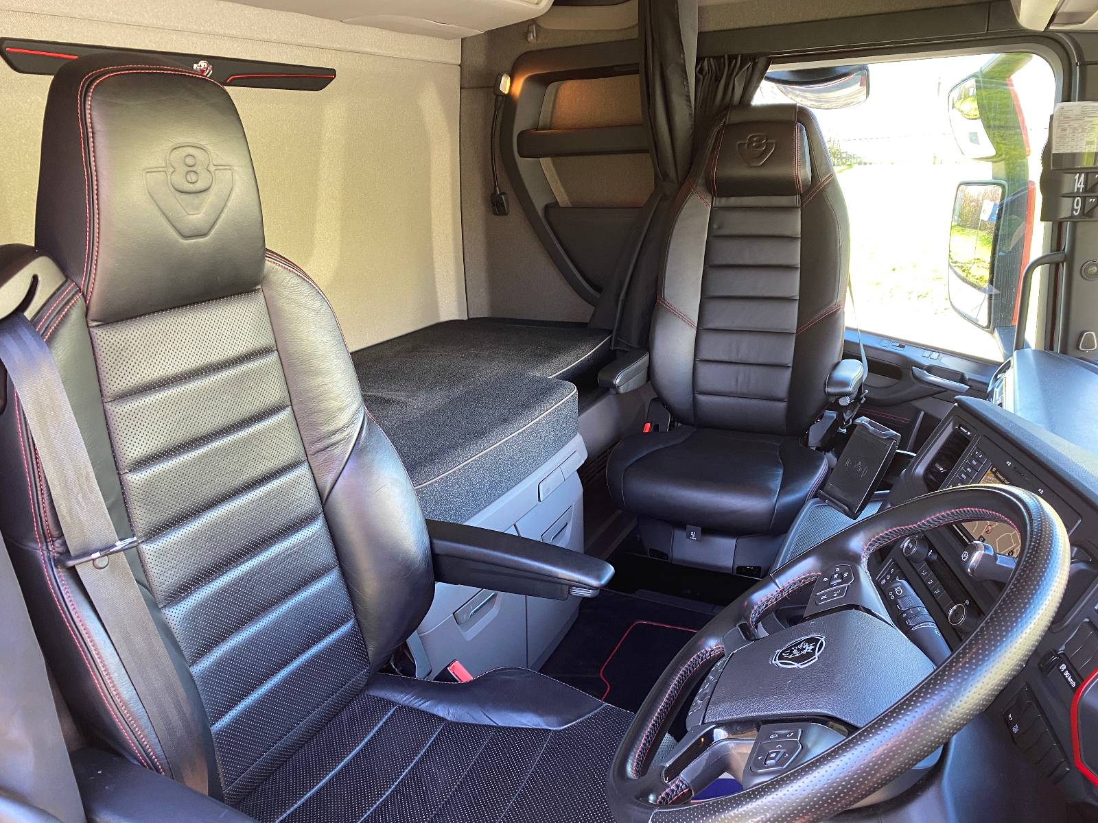 | Seat Upholstery Passenger Side | V8 leather black w red stitch |