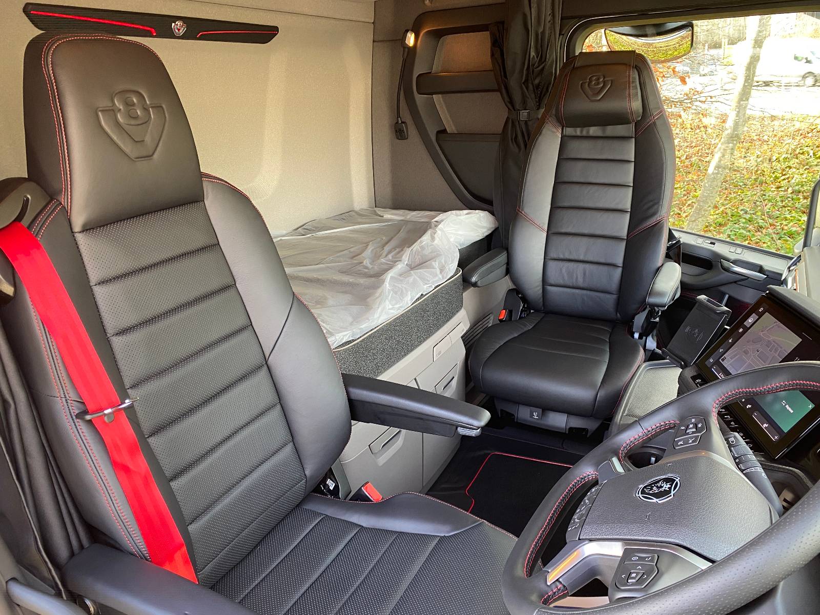 | Seat Upholstery Passenger Side | V8 leather black w red stitch |